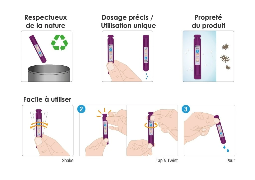 - Contenance : 15 ampoules unidose pour 30 jours d’action