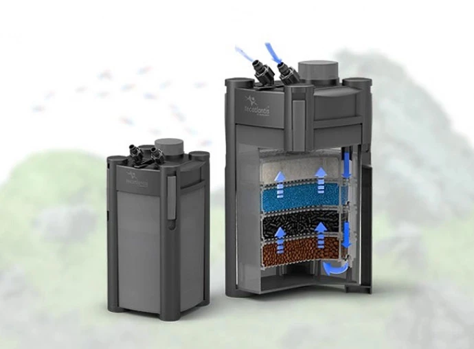 L’aquarium AQUATLANTIS Sublime Pro LED 200 x 60 x 75 cm aspect Gris Anthracite Brillant est livré avec son système de filtration extérieur CleanSys Pro 1800 a dissimuler dans votre meuble. Entièrement équipé de cartouches exclusives de filtration biologique, mécanique et active agissant directement sur les agents nocifs de votre eau.