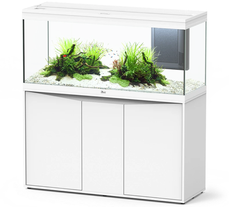 AQUATLANTIS Combinaison Volga 240 Blanc est un aquarium équipé avec meuble. Le volume brut de l’aquarium est de 295 L (240 L de volume utilisable) et ses dimensions font 122,5 x 42,7 x 55,4 cm. La nouvelle gamme d’aquarium Volga allie fonctionnalité, une conception exclusive et des matériaux les plus nobles, convenant aussi bien aux passionnés les plus exigeants quaux plus détendus. Lignes minimalistes et modernes dans un profilé en aluminium de haute qualité assorti à un meuble en bois contemporaine aux lignes douces.
