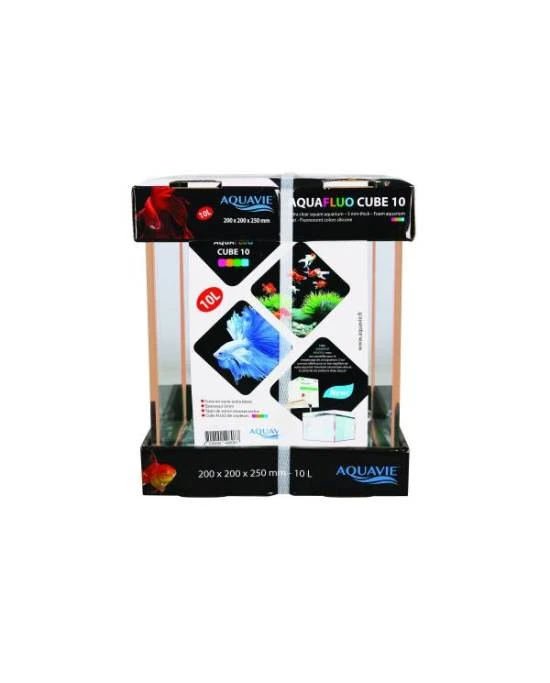 AQUAVIE AquaFluo Cube 10 L est un aquarium nu dimensions 20 x 20 x 25 cm avec silicone fluorescent Orange. C’est un aquarium en verre attractif et ludique idéal pour initier les enfants à l’aquariophilie ou simplement pour l’aspect décoratif ! Grâce à une colle siliconée spécifique, cet aquarium possède des arêtes colorées fluorescentes pour un rendu original de jour comme de nuit. L’AquaFluo est en verre extra-blanc d’une épaisseur de 5 mm, très résistant. Il est disponible en 5 tailles différentes et en plusieurs coloris. Il est vendu avec son tapis de sol en mousse.