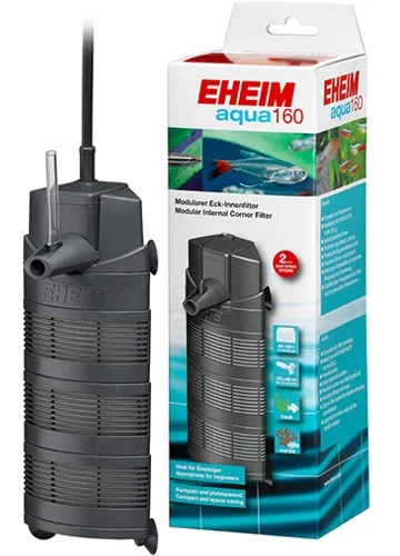 EHEIM Aqua 160 filtre d’angle interne multifonction 440 L/h pour aquarium de 60 à 160 L. Ce filtre modulaire est composé de cuves filtrantes encliquetables. Le filtre est compact, nécessite donc peu d’espace, offre de hautes performances et est facilement réglable.
