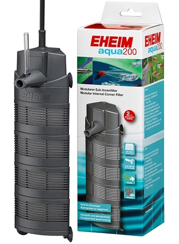EHEIM Aqua 200 filtre d’angle interne multifonction 440 L/h pour aquarium de 100 à 200 L. Ce filtre modulaire est composé de cuves filtrantes encliquetables. Le filtre est compact, nécessite donc peu d’espace, offre de hautes performances et est facilement réglable.