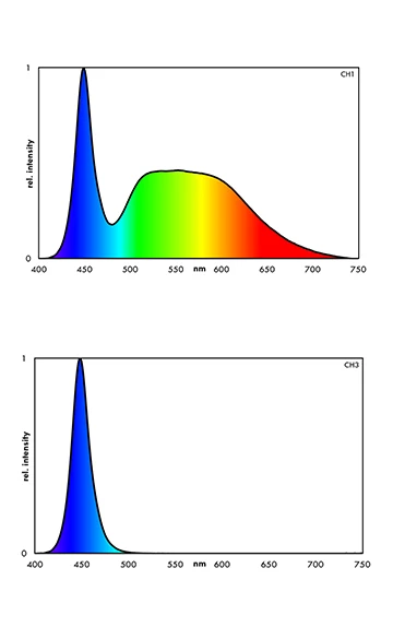 Le mélange de ses deux couleurs offre un spectre parfaitement équilibré et un flux lumineux important pour le maintien d’un aquarium récifal avec ou sans invertébrés. Les couleurs naturelles des poissons et la fluorescence des coraux seront révélés !