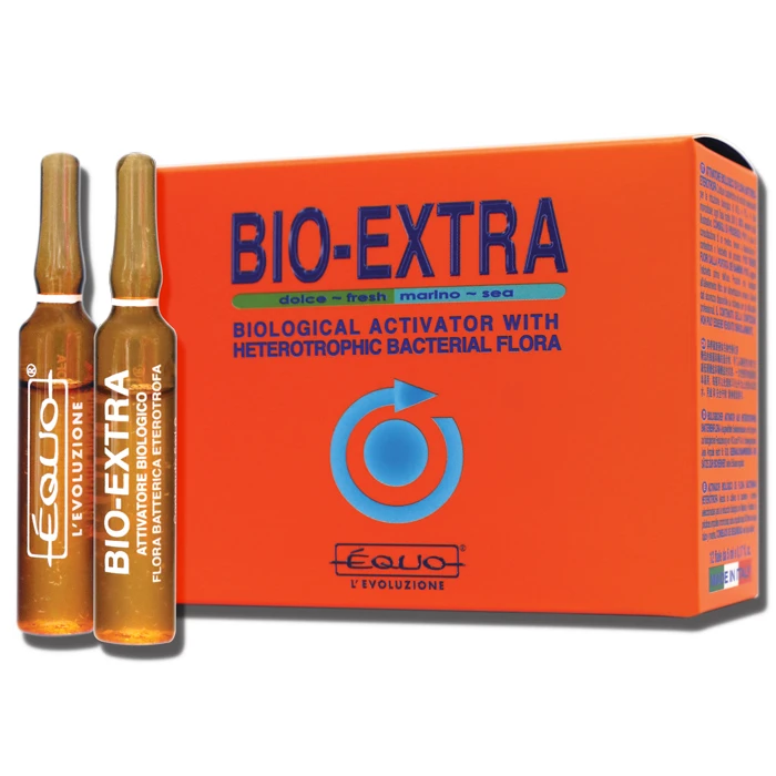 EQUO Bio-Extra 12 Ampoules est un activateur biologique avec flore Bactérienne Hétérotopique pour aquarium d’eau douce et eau de mer. Une faible concentration d’éléments nutritifs est une condition nécessaire au développement et à la prolifération élevée d’organismes en aquarium.