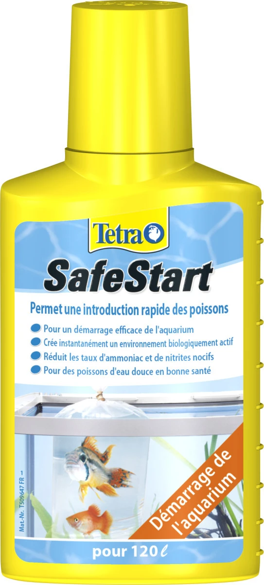 Il est également recommandé d’utiliser Tetra SafeStart après chaque changement d’eau partiel, nettoyage du filtre ainsi qu’après un traitement médicamenteux. Tetra SafeStart est disponible en flacons de 50ml, 100ml et 250ml et est efficace dans tous les aquariums d’eau douce. Plus : Tetra SafeStart possède également une formule spécialement développée pour les aquariums d’eau de mer : Tetra Marine SafeStart et pour les poissons rouges : Tetra Goldfish SafeStart.